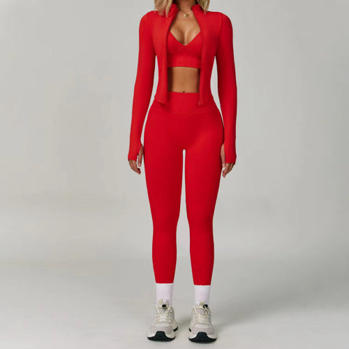 Includes: Sports bra, high-waist leggings, and matching jacket